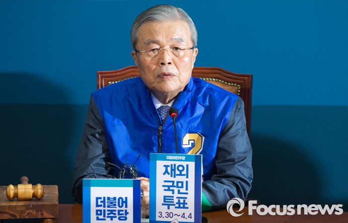 (서울=포커스뉴스) 김종인 더불어민주당 비대위 대표 겸 선대위원장이 27일 오전 서울 여의도 국회에서 중앙선거대책위원장단회의에 앞서 재외선거 독려 발언을 하고 있다.