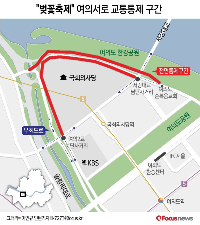 | △ [그래픽] “벚꽃축제” 여의서로 교통통제 구간 |