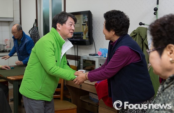 (서울=포커스뉴스) 20대 총선을 16일 앞둔 28일 오후 안철수 국민의당 서울 노원병 후보가 상계 1동 경로당을 방문해 인사하고 있다.