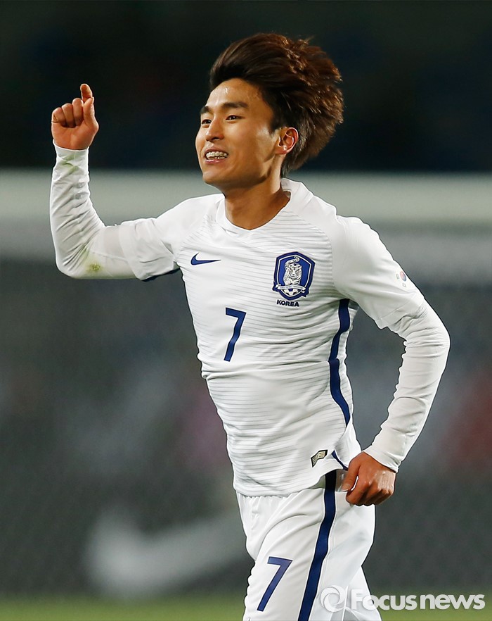 (고양=포커스뉴스) 28일 오후 경기 고양종합운동장에서 열린 올림픽축구대표팀 2차 평가전 대한민국과 알제리의 경기에서 한국 문창진이 후반전 추가골을 넣고 세리머니를 하고 있다.