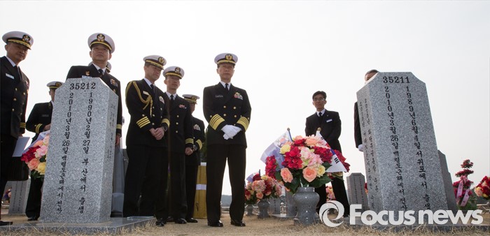 (대전=포커스뉴스) 다케이 도모히사 일본 해상막료장(해군참모총장)이 29일 오전 대전 유성구 국립대전현충원을 방문, 천안함 46용사 묘역을 둘러보고 있다.