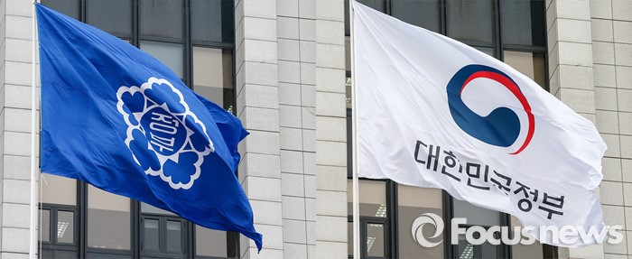 (서울=포커스뉴스) 29일 오전 서울 종로구 정부서울청사에서 대한민국 정부기 게양식이 열렸다. 과거 무궁화문양 정부기(좌측)와 새롭게 사용된 태극문양 정부기. 정부는 67년간 사용해온 '무궁화'에서 '태극' 도안으로 바뀐 새 정부기를 정부세종청사와 서울청사 등 10개 청사에 게양했다.