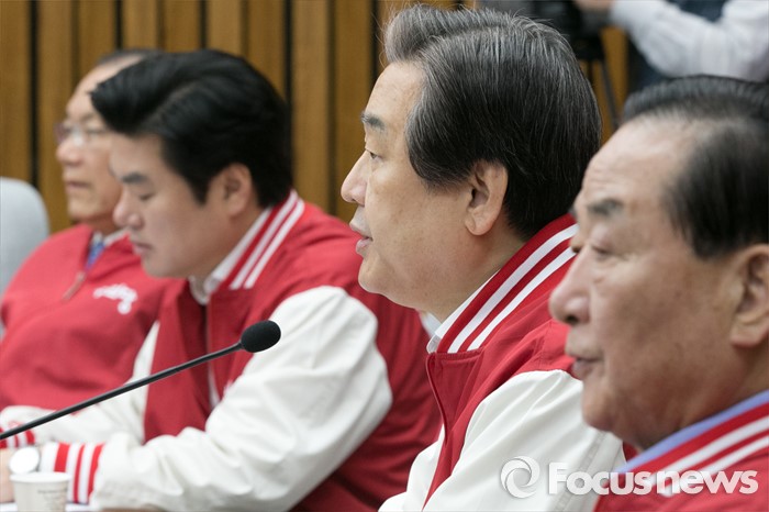 (서울=포커스뉴스) 김무성(오른쪽 두번째) 새누리당 대표가 29일 오전 서울 여의도 국회에서 열린 첫 중앙선거대책위원회의에 참석해, 모두발언하고 있다.