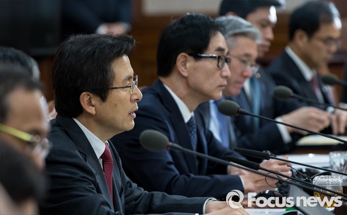 (서울=포커스뉴스) 29일 오전 서울 종로구 정부서울청사에서 열린 국무회의에 참석한황교안 국무총리가 모두발언 하고 있다.