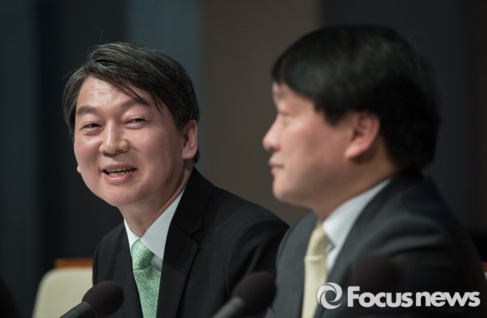 | △ 관훈토론회에서 웃음 보이는 안 대표 |