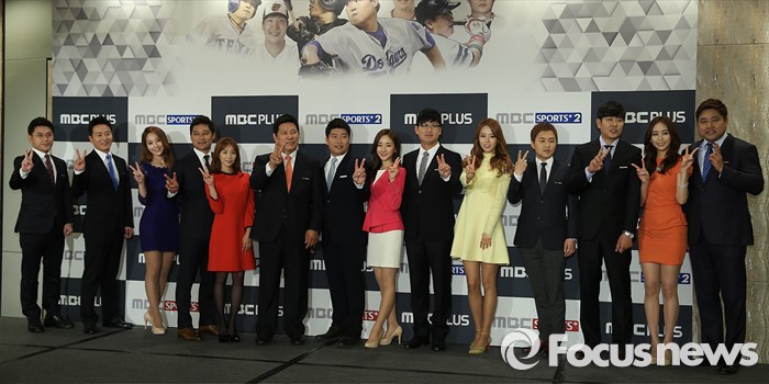 (서울=포커스뉴스) 29일 오전 서울 종로구 포시즌스 호텔에서 열린 'MBC스포츠플러스2' 개국 기자간담회에 참석한 출연진이 포토타임을 갖고 있다.
