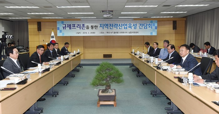 (부산=포커스뉴스) 유일호 부총리 겸 기획재정부 장관이 29일 규제프리존을 통한 지역전략산업육성을 위한 현장으로 부산시 소재 IoT 글로벌 스마트시티 실증지원센터를 방문, 관계기관 및 관련업체와의 간담회에서 모두발언을 하고 있다. <사진제공=기획재정부>