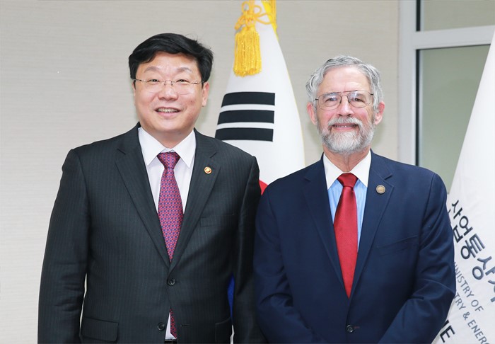 (서울=포커스뉴스) 주형환 산업통상자원부 장관은 29일 오후 서울 종로구 정부서울청사 외교부 집무실에서 ‘한미 과학기술협력 공동위원회’에 참석하기 위해 방한중인 존 홀드렌 (John P. Holdren) 미국 백악관 과학기술정책실장(장관급)과 면담에 앞서 기념촬영을 하고 있다. <사진제공=산업통상자원부>