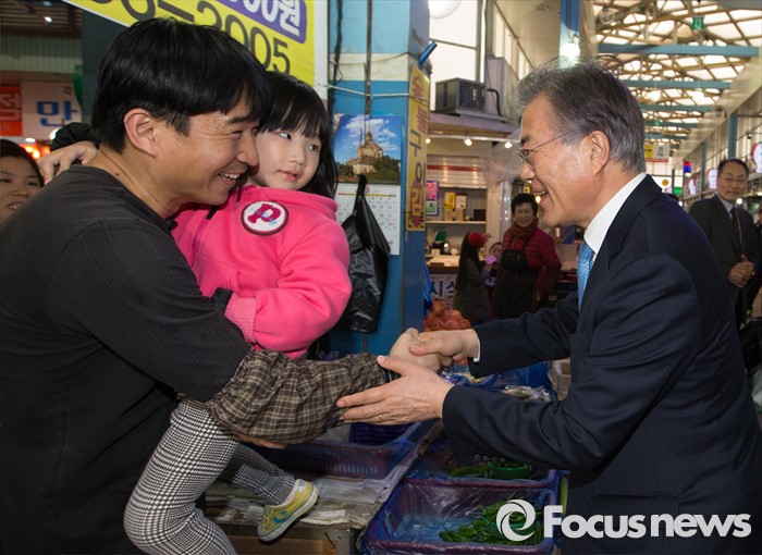 (논산=포커스뉴스) 문재인 더불어민주당 전 대표가 29일 오후 충남 논산시 중앙시장을 방문해 시민들과 악수하며 김종민 후보의 지지를 호소하고 있다.