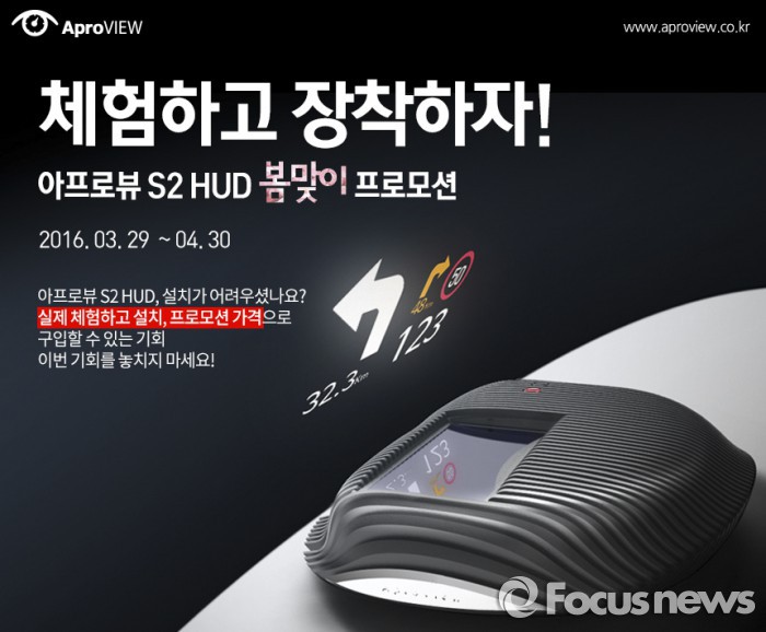 (서울=포커스뉴스) 에이치엘비(HLB)는 헤드 업 디스플레이(HUD) 제품인 '아프로뷰 S2' 구매 고객을 위해 '체험하고 장착하자!' 프로모션을 진행한다고 29일 밝혔다.