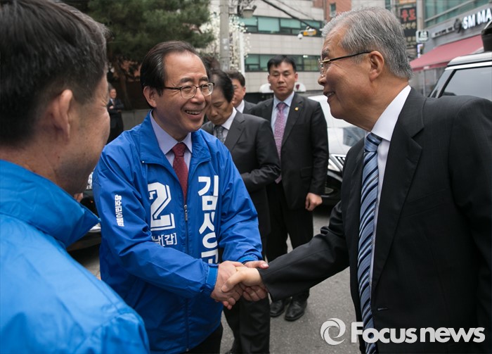| △ 인사하는 김종인-김성곤 |