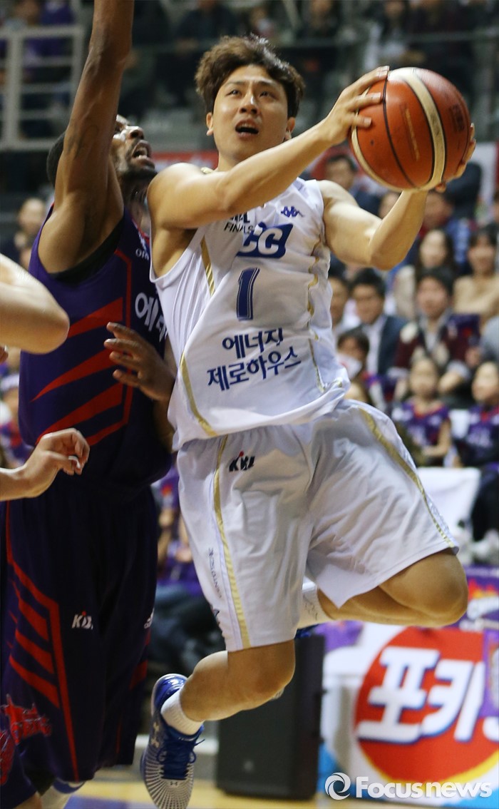 (고양=포커스뉴스) 29일 고양체육관에서 열린 2015-2016 프로농구 챔피언결정전 6차전 오리온-KCC 경기에서 KCC 김태술이 오리온 헤인즈의 수비를 따돌리며 레이업슛을 시도하고 있다.