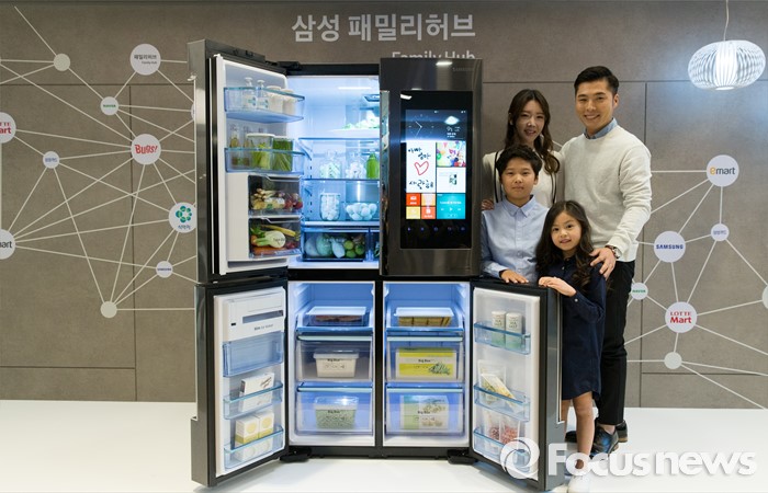 (서울=포커스뉴스) 30일 오전 서울 강남구 삼성전자 서초사옥에서 모델들이 '2016 삼성전자 패밀리 허브' 냉장고를 선보이고 있다.