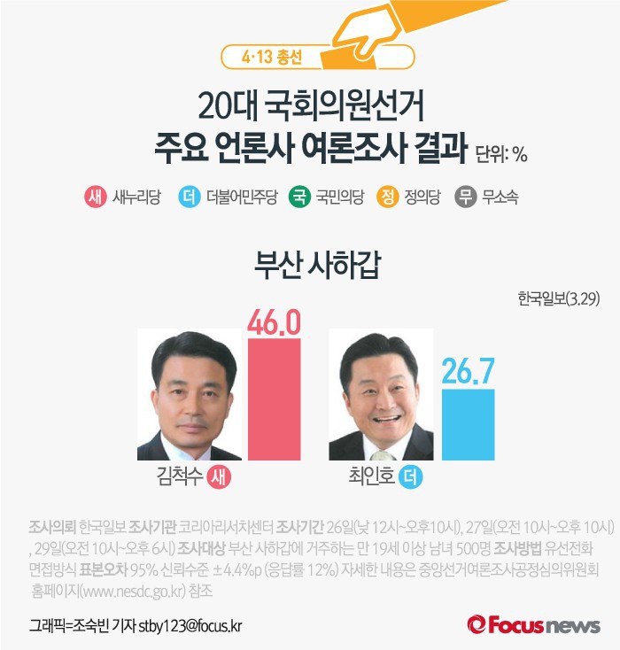 | △ [그래픽] 4.13총선 부산 사하갑 여론조사 결과 |