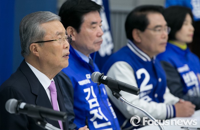 (수원=포커스뉴스) 30일 오전 수원 팔달구 경기도의회에서 열린 더불어민주당 경제살리기 경기 국회의원 후보자 연석회의에 참석한 김종인 비대위 대표가 모두발언을 하고 있다.