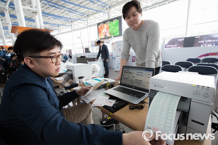 (서울=포커스뉴스) 제20대 국회의원선거를 14일 앞둔 30일 오후 서울 중구 서울역에 마련된 사전투표 모의체험장에서 시민들이 다음달 8일, 9일 실시되는 사전투표를 미리 체험할 수 있는 모의체험을 하고 있다.