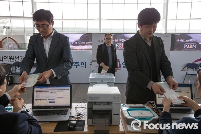 (서울=포커스뉴스) 제20대 국회의원선거를 14일 앞둔 30일 오후 서울 중구 서울역에 마련된 사전투표 모의체험장에서 시민들이 다음달 8일, 9일 실시되는 사전투표를 미리 체험할 수 있는 모의체험을 하고 있다.