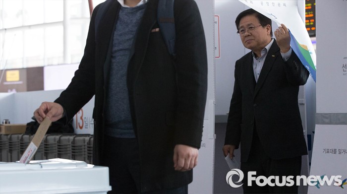 (서울=포커스뉴스) 제20대 국회의원선거를 14일 앞둔 30일 오후 서울 중구 서울역에 마련된 사전투표 모의체험장에서 시민들이 다음달 8일, 9일 실시되는 사전투표를 미리 체험할 수 있는 모의체험을 하고 있다.