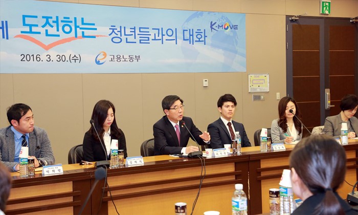 (서울=포커스뉴스) 이기권 고용노동부 장관이 30일 오전 서울 강남구 한국무역협회(51층 소회의실)에서 해외취업을 준비 중인 청년, 관련 대학 및 민간기관 관계자 들과 해외진출을 도전하는 청년들과의 대화를 갖고 의견을 나누고 있다. <사진제공=고용노동부>
