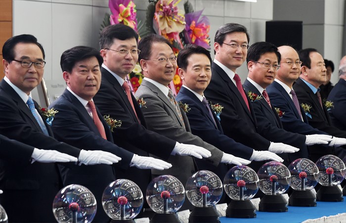 (일산=포커스뉴스) 유일호 부총리 겸 기획재정부 장관이 30일 경기 일산 킨텍스 전시관에서 열린 '2016 코리아 나라장터 엑스포'에 참석, 테이프커팅식을 하고 있다.