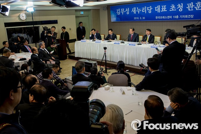 (서울=포커스뉴스) 30일 오후 서울 중구 프레스센터에서 열린 관훈클럽 초청 관훈토론회에 참석한 김무성 새누리당 대표가 모두발언을 하고 있다.