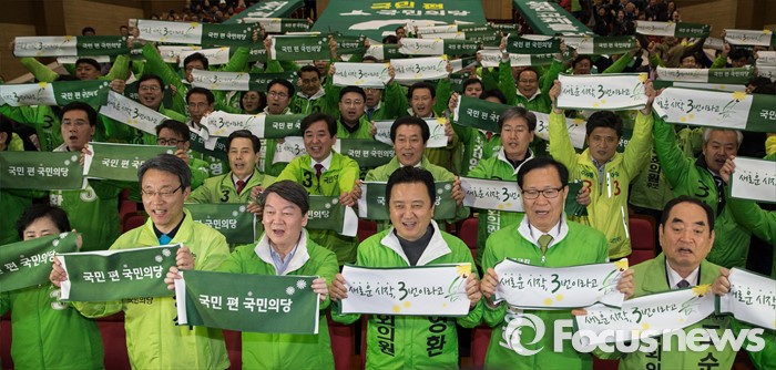 (서울=포커스뉴스) 안철수 국민의당 대표와 총선에 출마하는 수도권 후보들이 30일 오후 국회 의원회관에서 열린 '총선승리를 위한 수도권 후보 출정식'에서 총선 승리를 다짐하는 구호를 외치고 있다.