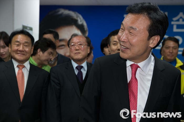 (성남=포커스뉴스) 손학규 전 더불어민주당 상임고문이 30일 오후 경기도 성남시 김병욱 더민주당 분당을 후보 선거사무소을 방문해 지지자들과 악수하고 있다.