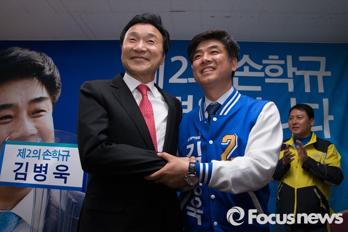 (성남=포커스뉴스) 손학규 전 더불어민주당 상임고문이 30일 오후 경기도 성남시 김병욱 더민주당 분당을 후보 선거사무소을 방문해 김후보와 기념촬영을 하고 있다.