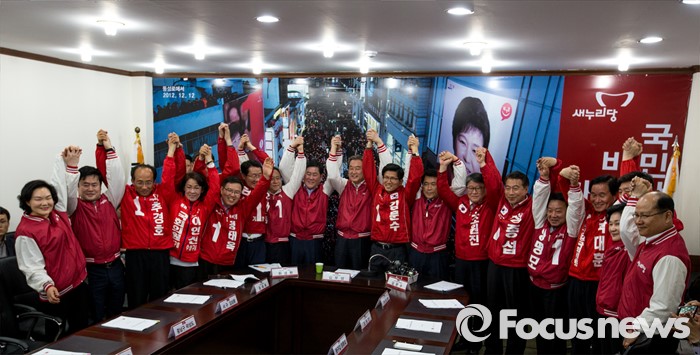 한편, 이날 회의가 열린 대구 수성구 새누리당 대구시당 앞에는 김무성 대표의 옥새파동으로 공천에서 배제된 이재만 전 동구청장의 지지자들이 항의 시위를 벌였다.