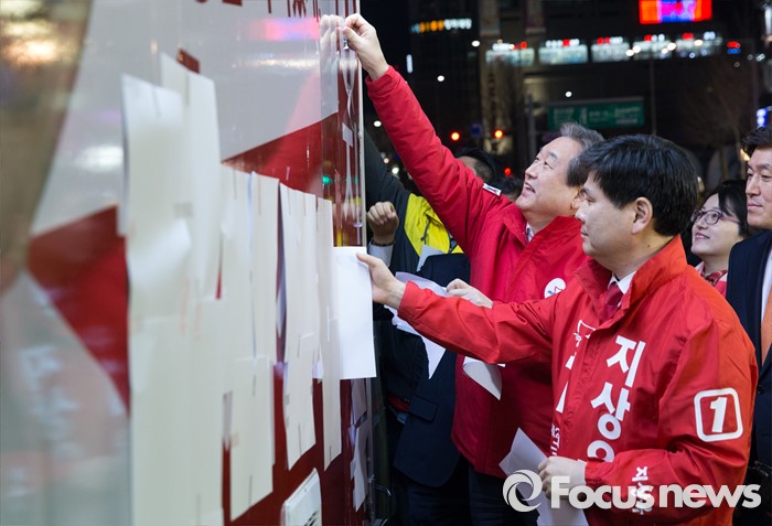 선거유세차량 가림막 제거하는 김무성과 지상욱