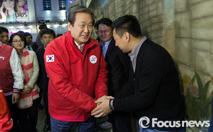 (서울=포커스뉴스) 4.13총선 공식선거운동 첫날인 31일 오전 서울 중구 동대문 누죤 앞에서 김무성 새누리당 공동선대위원장이 지상욱 서울 중구성동구을 후보와 선거운동을 하고 있다.
