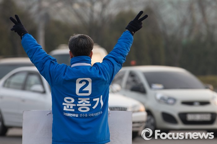 (인천=포커스뉴스) 제20대 총선 선거운동이 공식적으로 시작된 31일 오전 인천 연수구 한 사거리에서 윤종기 더불어민주당 연수을 후보가 출근하는 시민들에게 인사하며 지지를 호소하고 있다.