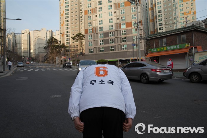 (서울=포커스뉴스) 20대 총선 공식선거 운동이 시작된 31일 오전 서울 마포구의 한 아파트 입구에서 강승규 무소속 마포갑 후보측이 출근길 선거유세를 하고 있다.