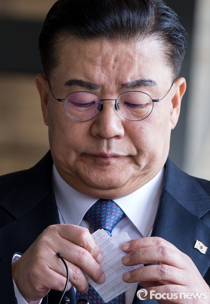 (서울=포커스뉴스) 용산 국제업무지구 개발 관련 금품수수 혐의를 받고 있는 허준영 전 코레일 사장이 31일 오전 서울중앙지검에 출두, 준비한 원고를 꺼내고 있다.