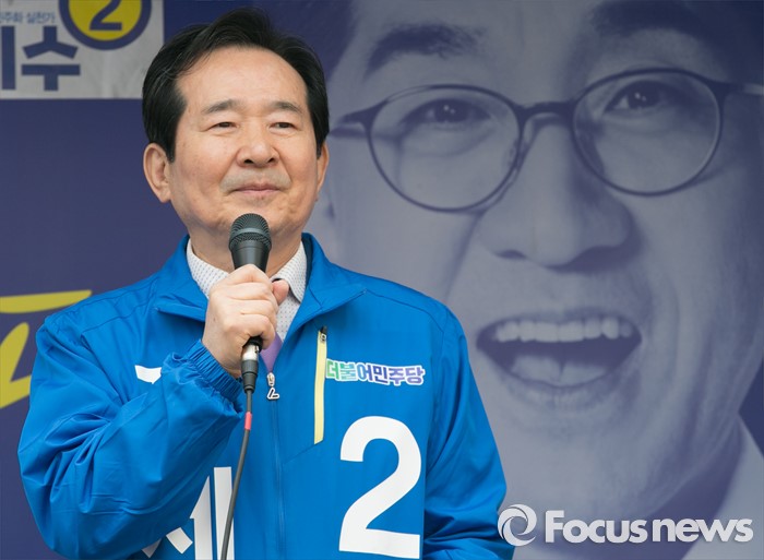 (서울=포커스뉴스) 20대 총선 공식선거 운동이 시작된 31일 오전 서울 남대문시장에서 열린 더불어민주당 중앙선거대책위원회 출정식에 참석한 정세균 종로구 후보가 이지수 중구성동을 후보의 지지를 호소하고 있다.