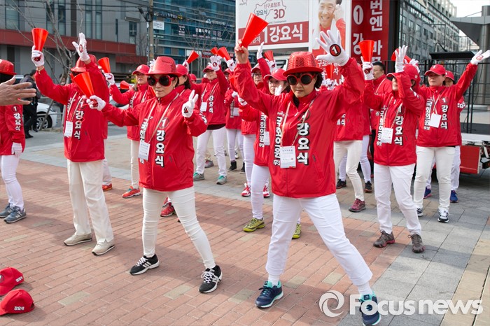 (서울=포커스뉴스) 4.13 총선 공식선거운동이 시작된 31일 오전 서울 구로구 구로디지털단지역 인근 한 대형마트 앞에서 강요식 새누리당 구로을 후보 선거운동원들이 지지를 호소하고 있다.