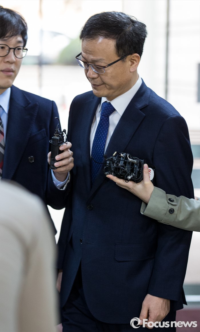 (서울=포커스뉴스) 광고기획사에서 뒷돈을 챙긴 혐의를 받고 있는 백복인 KT&G 사장이 영장실짐심사를 받기 위해 31일 서울중앙지방법원으로 들어서고 있다.