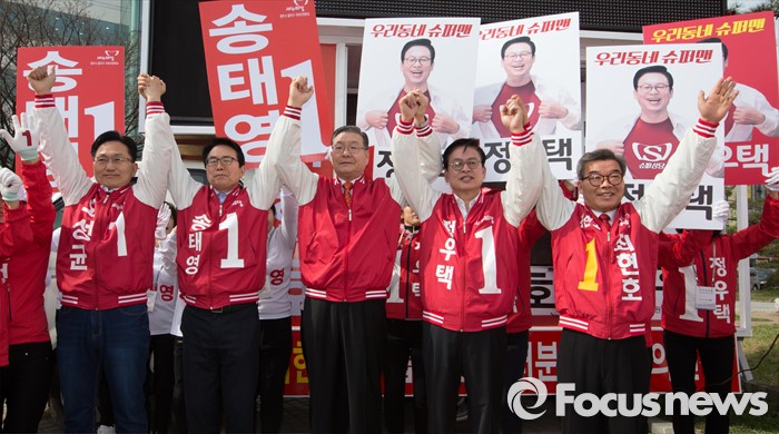 | △ 필승 다짐하는 청주 새누리당 후보자들 |