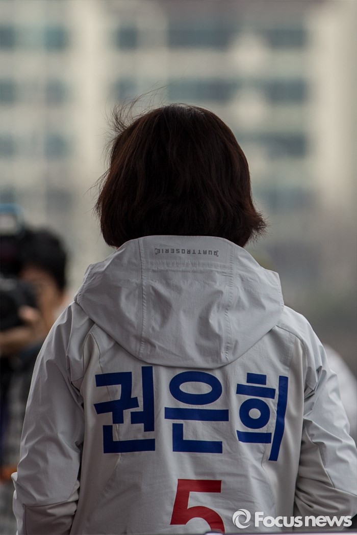 (대구=포커스뉴스) 무소속 대구 북구갑 권은희 후보가 31일 오전 대구 동구 공항교에서 열린 선거운동 출정식에 참석 하고 있다.