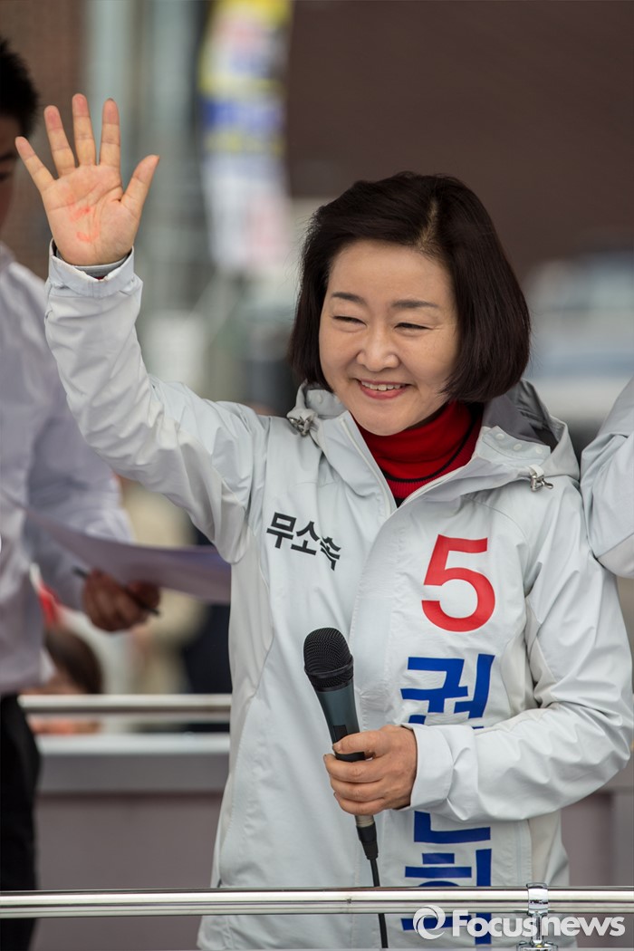 (대구=포커스뉴스) 무소속 대구 북구갑 권은희 후보가 31일 오전 대구 동구 공항교에서 열린 선거운동 출정식에 참석해 손을 흔들며 지지자들에게 인사 하고 있다.