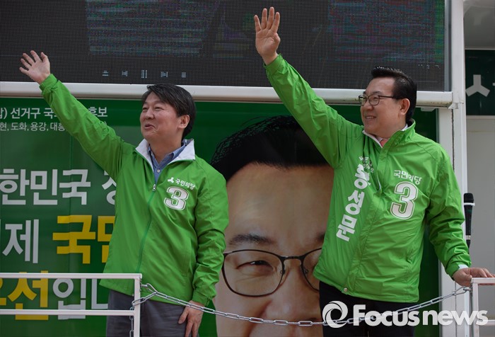 | △ 손 흔드는 안철수와 홍성문 |