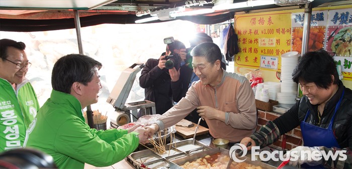 (서울=포커스뉴스) 총선 선거운동이 공식적으로 시작된 31일 오전 안철수 국민의당 상임공동대표가 서울 마포구 이대역 앞에서 마포갑 홍성문 후보와 함께 홍성덕 서대문을 후보 지원 유세를 하고 있다.