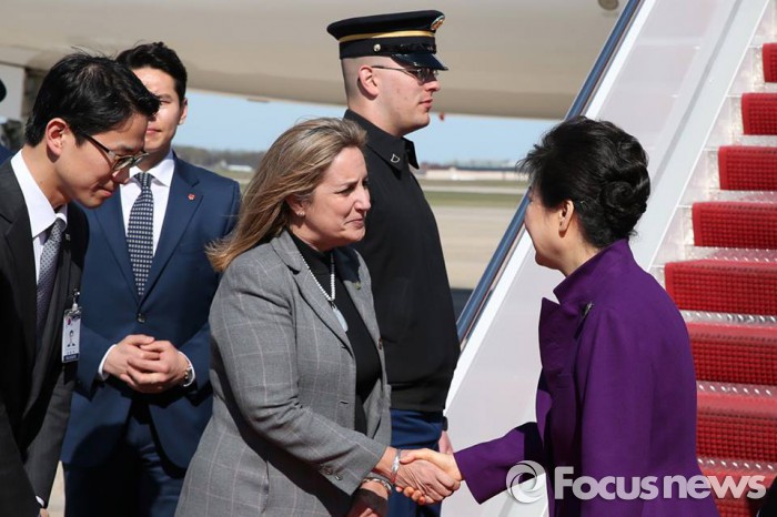 박 대통령은 30일 오후 미국 워싱턴DC 인근 메릴랜드주 세인트 앤드루스 공군기지에 도착, 31일 버락 오바마 미국 대통령과의 한미 정상회담을 시작으로 한미일, 한일, 한중 정상회담을 연이어 개최한다.