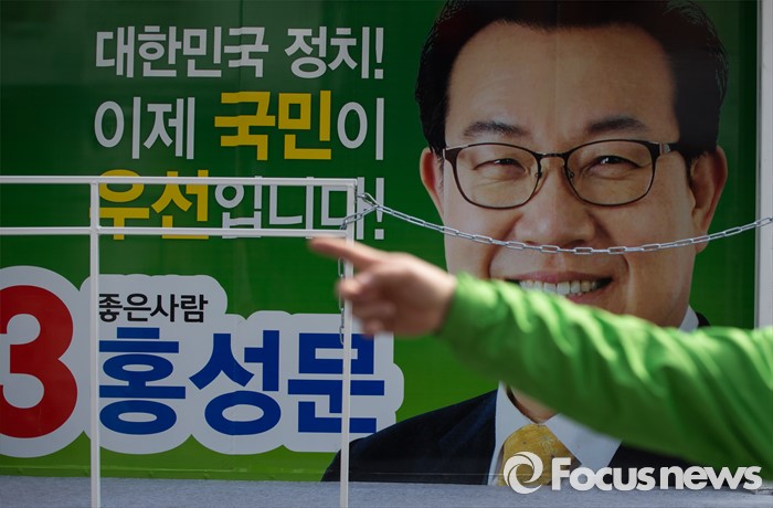 (서울=포커스뉴스) 홍성문 국민의당 마포갑 후보가 31일 오전 서울 마포구 이대역 앞에서 홍성덕 서대문을 후보 지원 유세를 하고 있다.