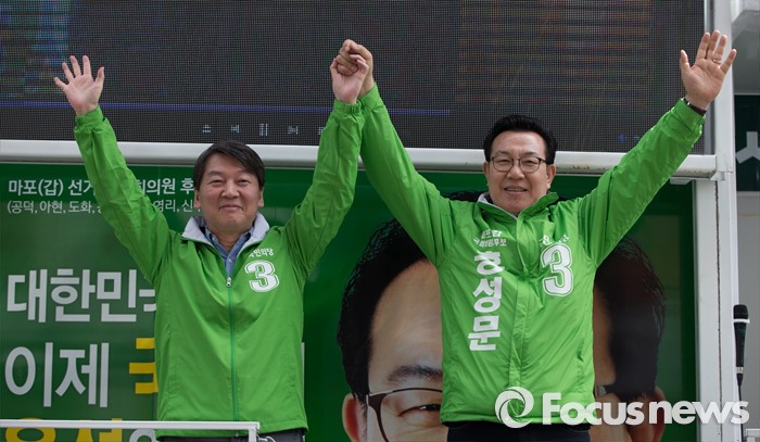 (서울=포커스뉴스) 총선 선거운동이 공식적으로 시작된 31일 오전 안철수 국민의당 상임공동대표가 서울 마포구 이대역 앞에서 마포갑 홍성문 후보와 함께 홍성덕 서대문을 후보 지원 유세를 하고 있다.