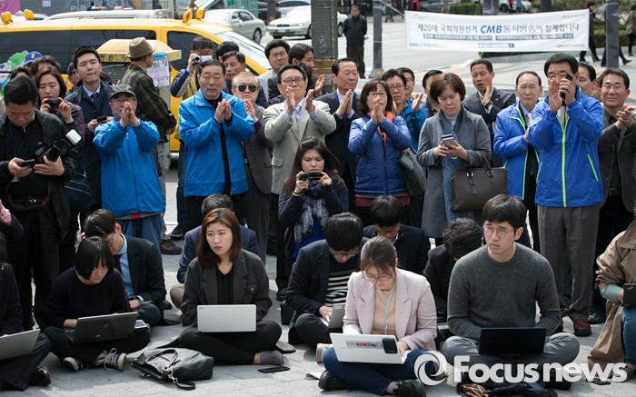 (서울=포커스뉴스) 20대 총선 공식선거 운동이 시작된 31일 오전 서울 장안동사거리에서 열린 민병두 더불어민주당 동대문을 후보 출정식에 참석한 지지자 및 시민들이 민 후보의 발언을 듣고 박수치고 있다.