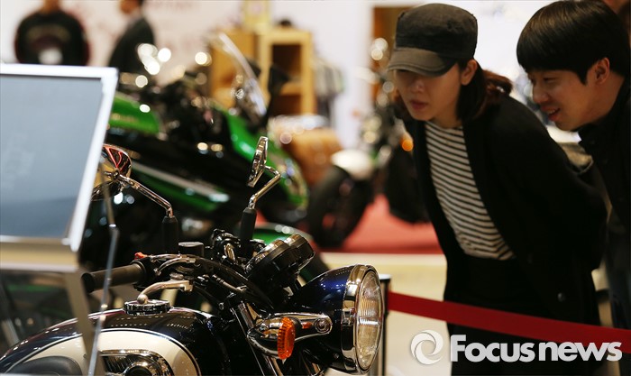 (서울=포커스뉴스) 31일 오전 서울 강남구 코엑스 D홀에서 열린 '2016 서울 모터사이클쇼' 에 관람객들이 전시된 머신들을 살펴보고 있다.