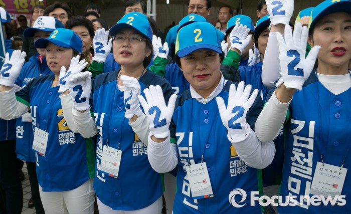 (안산=포커스뉴스) 20대 총선 공식선거 운동이 시작된 31일 오후 경기도 홈플러스 안산고잔점 앞에서 열린 더불어민주당 안산 집중유세에 참여한 선거운동원들이 지지를 호소하고 있다.