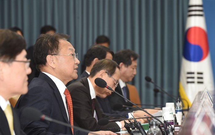 (서울=포커스뉴스) 유일호 부총리 겸 기획재정부 장관이 31일 오후 서울 종로구 정부서울청사에서 제5차 경제관계장관회의를 주재, 모두발언을 하고 있다. <사진제공=기획재정부>