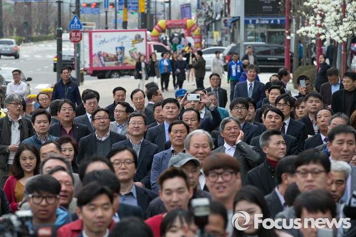 (안산=포커스뉴스) 20대 총선 공식선거 운동이 시작된 31일 오후 경기도 홈플러스 안산고잔점 앞에서 시민 및 지지자들이 더불어민주당 안산 집중유세를 지켜보고 있다.